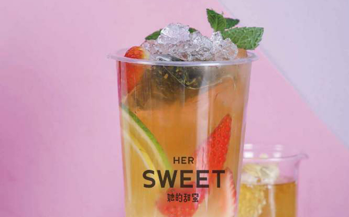 她的甜蜜奶茶是一家以颜值见长的小清新品牌,不仅仅是包装好看,奶茶本身的颜色也由各种水果调制得颜色艳丽,近几年的夏天还推出了鲜果水果茶系列,将她的甜蜜奶茶这个品牌在奶茶市场上又推向了另外一个高峰。