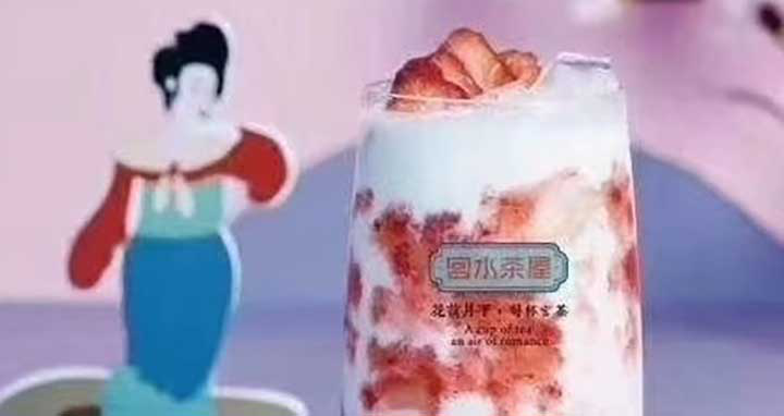宫水茶屋是一家非常具有品牌特色的新兴奶茶连锁品牌,宫水茶屋使用的是目前最火的中国宫廷风外观设计,产品本身也是时下最为流行的水果奶盖奶茶,可以说是从里到外都迎合着每一个年轻消费者。