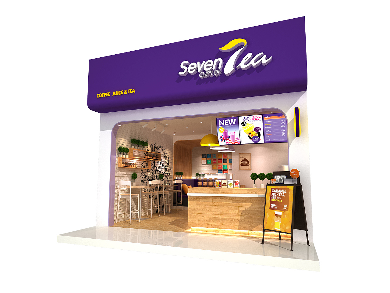 再次,在七号茶饮奶茶品牌的帮助之下,选择一处合适的开店位置,然后采用品牌统一的装修模式对店铺进行装修,并购买设备和原材料摆放在店铺当中。