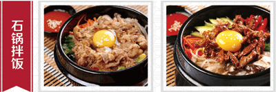 石锅拌饭----是韩国人民非常喜爱的家常饭之一,各地区的韩国人会就地取材,把当地的时蔬与米饭在石锅中加热后,在兹兹做响中,把营养和美味拌在一起,使你在油香浓郁中保持一份坚挺的战斗力,最大的特点下饭,即使满满一大石锅的饭,也会让挑食的你吃到锅底精光。