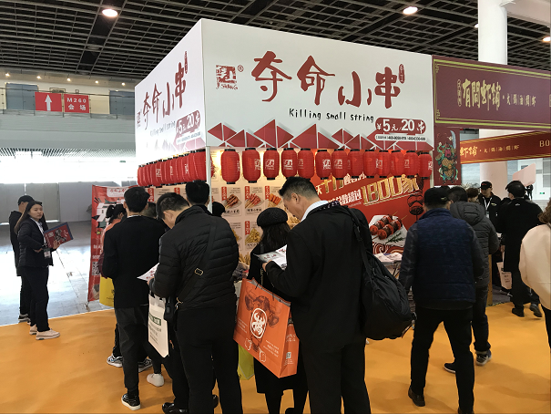 集尚餐饮旗下“夺命小串”品牌自2015年问世以来,以其时尚清新的店面形象、极具吸引力的产品、合理的价格、优质的服务赢得了众多消费者的青睐和好评。展会现场,夺命小串独树一帜的展位布置吸引了不少投资者前来,工作人员现场制作的小串让投资者大快朵颐,看到了加盟,与现场招商人员洽谈合作的人更是络绎不绝。