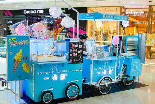 一朵甜除了主打的棉花糖外,还增加了创意的冰淇淋系列,组合售卖,不仅仅能够有效调高客单价,还能让顾客有更多的选择,定期也会有新品研发推送,保证竞争力。一朵甜本身就是车体结构,只需简单组装就开起来,产品制作也是很简单迅速的,2分钟内就能出餐,无需等待,拥有更大的盈利空间。