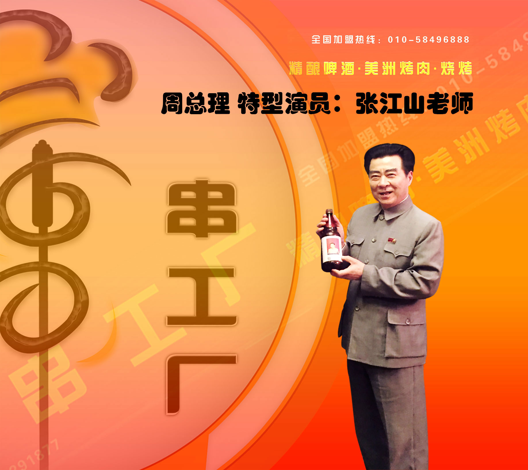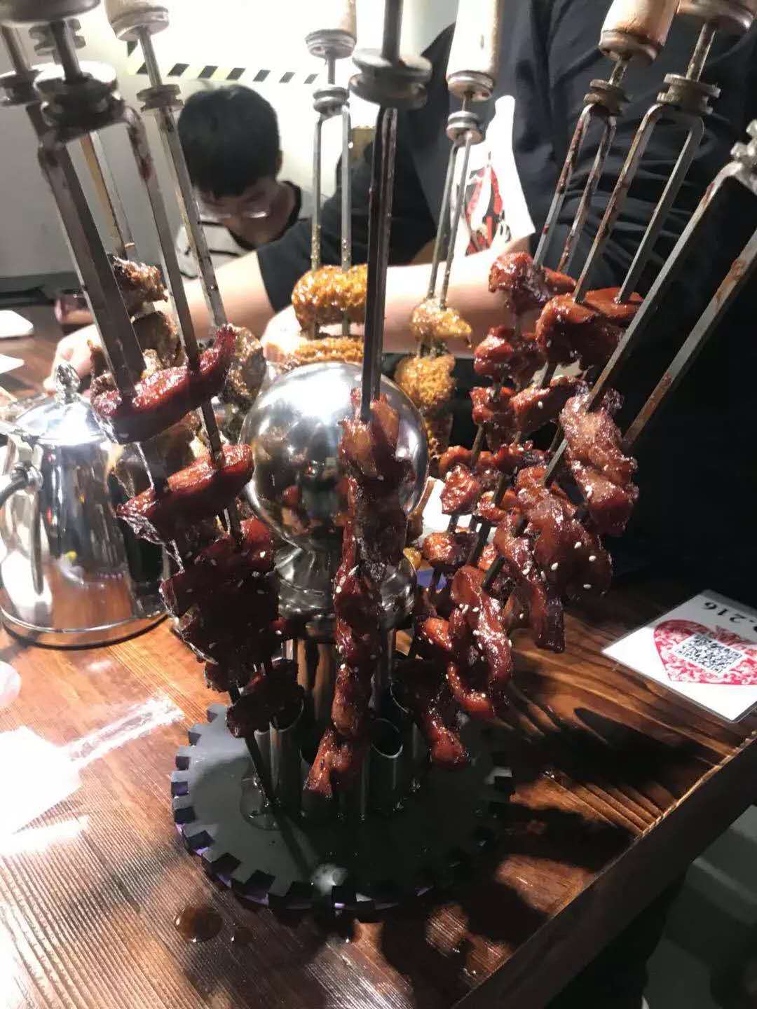 串工厂是国内新型烧烤餐饮项目。采用精酿啤酒和美洲烤肉.烤串相结合的模式,美洲烤肉采用零点模式,添加了精美的下酒凉菜降低了运营成本,提高了盈利点,并与其他啤酒屋和烧烤店产生差异化,为店里带来更多的消费群体。 店内装修以工厂,砖墙,老旧的感觉为主,挂德国啤酒画。