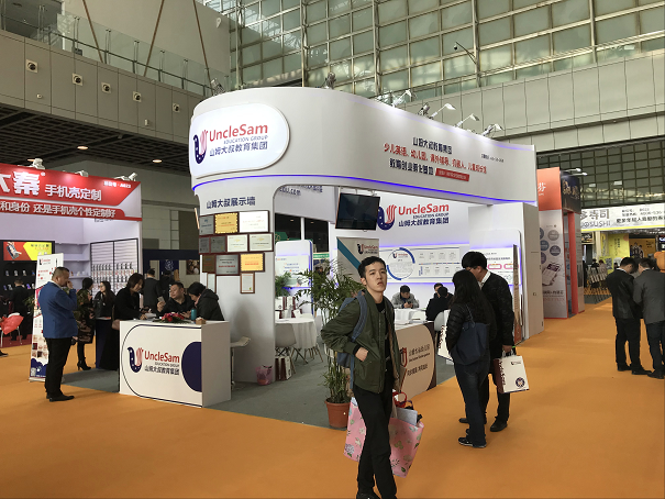 山姆大叔教育是全球领先的教育集团,总部位于美国加利福尼亚州,业务覆盖教育产品的研发与推广、师资培训与认证、教育连锁投资与管理三大领域。山姆大叔品牌具有浓郁的美式特点。无论是中国人还是外国人,对山姆大叔都不陌生。展会现场,众多投资人都对山姆大叔表现出浓厚的兴趣,并向工作人员咨询加盟细节。