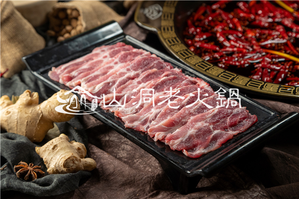 薄薄的五花肉片,整齐地摆放在盘中,夹起一片涮上一会,一口咬下去,你会惊讶五花肉竟然也能如此美味!挂着红油汤汁的五花肉,满满当当塞一口在嘴里,汁水在口腔内迸发,非常紧实劲道。