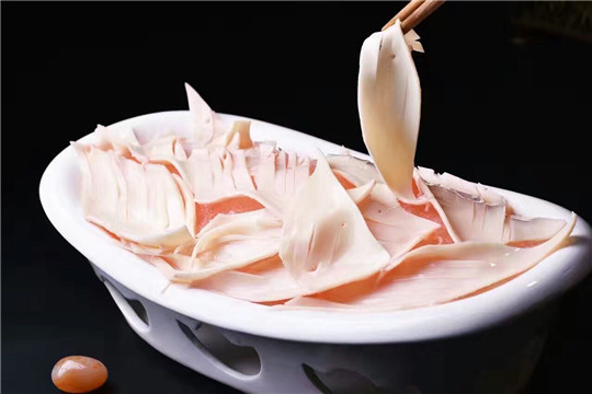 色泽莹白,每一块牛黄喉上面都切了菱格花纹,更加吸汁,仅仅涮30秒就已经足够入味,质地脆爽,柔韧弹牙。