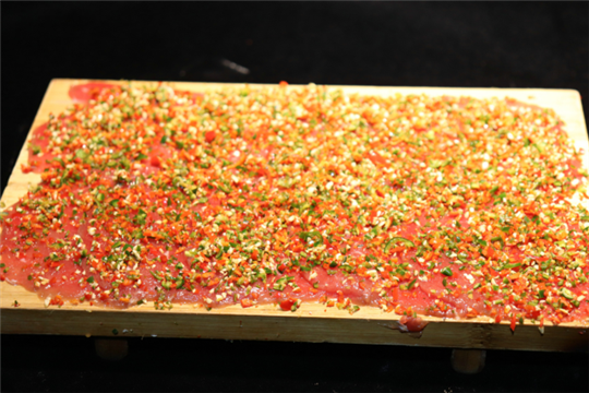外观上青红椒颜色鲜明,看上去就超级有食欲!在浓郁滚烫的牛油锅底里涮过之后,纹理感依然清晰,鲜嫩无比,丝丝的麻辣味,基本上是秒空的节奏!