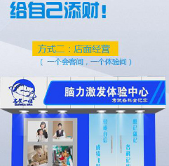 建样板点,同时招商布点复制模式,中后期主要以扶持各县/区经销商运作、销售,以及帮助经销商做必要的大、中型体验式会销活动。是大多数创业投资者投身教育长久事业的前期选择。