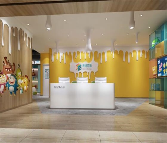 3、选址设计:美味英语总部外派选址经理实地考察,做出现场评估,对校区内部布局及外立面展示给出专业的建议。设计团队在校选址定后,严格依据品牌VI、SI标准,为您提供校区整体规划与设计装修指导。