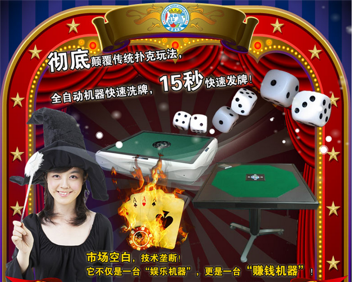 随着生活水平的日益提高,人们越来越重视生活质量和身心健康,注意劳逸结合,集体闲娱乐的扑克游戏,成为了人们茶余饭后主要娱乐方式。由于扑克游戏玩法的多样性,玩牌的过程中洗牌、发牌占用了大半时间,不仅影响游戏娱乐进程和玩牌的舒适度,同时因手工洗牌,容易作弊造成游戏的不公平性,亿万扑克玩家和赌客们,棋牌室、茶楼、宾馆酒店、洗浴中心等休闲娱乐城的老板们,千呼万唤“舒适玩牌,玩牌不洗牌,抵制作弊”的呼声一浪高过一浪,【查理大帝】全自动扑克机得问世,将彻底解决这一系列难题,这无疑给【查理大帝】提供了巨大的市场发展空间。