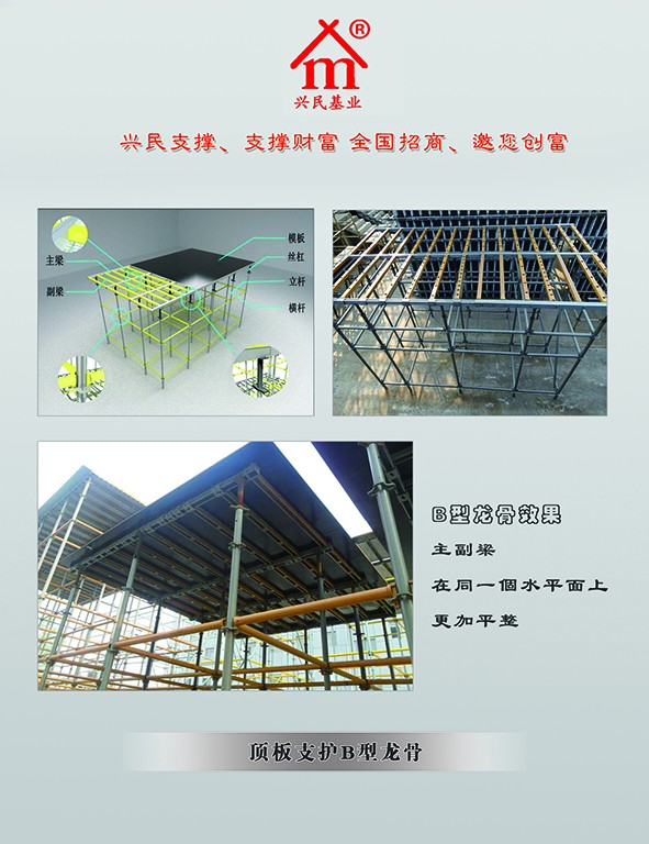 我们是北京兴民基业建筑设备有限公司,隶属于兴民集团,主营四大体系:支撑体系(轮扣、盘扣、钢支撑)、支护体系(剪力墙支护体系、顶板支护体系、梁支护体系)、配件体系(应用型配件体系、装配型配件体系)、服务体系(售前服务体系、售中服务体系、售后服务体系),现面向全国诚招经销加盟商!