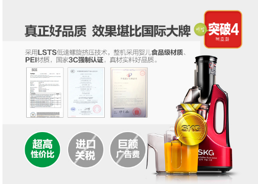skg是一个专业的家电品牌,在近几年成长速度极快。skg品牌隶属于艾诗凯奇电气有限公司,该公司位于广东顺德这个中国家电之都,是行业内规模比较大的电商企业之一。skg现在在英国、美国、澳大利亚、德国、巴西建设了5个大型仓库,产品畅销国际上90多个国家和地区,积累了雄厚资本。skg已经与淘宝、天猫、京东、一号店等大型电子商务平台达成了战略合作,销售额轻松破2亿,这个数据还在以高速增长。